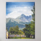 Majestic summer landscape: mountain peaks, blue sky and wooden cottages among trees. Great gift for nature, tourism, and hiking lovers. Lovely addition to your home decor. It will especially work well with the rustic, Scandinavian and contemporary style of decor. You can delete the text "The journey matters more than the destination" or replace it with your own message (click "Personalise this template").