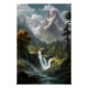 Mountain Waterfall Serenity - Nature Landscape Art Poster