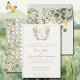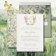 Mountain Wildflower Garden Wedding Invitation. This elegant sophisticated invitation has a beautiful romantic wedding crest with summer garden florals, ready for your own branded initials. Summer mountain wildflowers in pink, blues, buttery yellows cascading around a sage green wedding crest. This elegant wedding invitation has beautiful modern calligraphy in sage and gold, ready to personalise and customise with your own names and wedding information. The back of the card features a garden of yellow flowers peeking through a sage green trellis. Match it with one of our beautiful Mountain Wildflower Garden Wedding Invitation envelopes, save-the-date, rsvp or detail cards. A beautiful elegant, modern and sophisticated Wedding Collection to make your own.