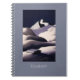 A spiral notebook you can add your name (or other text such as a subject title, notes, musings etc...) underneath an illustration of a snowy winter landscape scene with hills and mountains in Austria with a secluded cabin in the foreground.