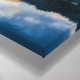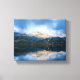 Canvas art print with a beautiful nature photo. Mountains in the background with a calm still lake in the foreground. Serene and relaxing photograph.