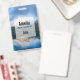 Name badge with a beautiful nature photo. Mountains in the background with a calm still lake in the foreground. Serene and relaxing photograph.