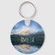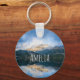 Personalised keychain with a beautiful nature photo. Mountains in the background with a calm still lake in the foreground. Serene and relaxing photograph.