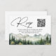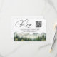 An elegant Wedding RSVP card with watercolor mountains and pine trees that you can customise with your text.