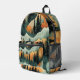 Mountains And Trees Orange And Green Pattern Printed Backpack