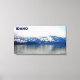 A digital painting of snow-capped mountains from the shores of Lake Pend Oreille at Sandpoint ,Idaho on a late winter day. Text reading "IDAHO" also appears.