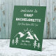 Mountains Green White Camp Bachelorette Welcome Pedestal Sign