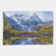 This amazing Getty Images photo features a panoramic of water front lake and Himalaya mountain range during autumn leaf season at Yading National Park, China