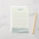 Misty mountains lined writing paper with monogram at the top. Blue-grey mountains make a wide border along the bottom, with lines for easy writing. Add three initials to the top in dark blue script font.