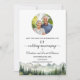 An elegant Wedding Anniversary Save the Date Card with watercolor mountains and pine trees and 1 special photo that you can customise with your details.