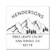 This modern return address stamp features a rustic illustration of mountains and pines with your family name above and your return address below. The text is in a modern simple font. Create your own mountain return address stamp by clicking on the ´´Personalise´´ button.
