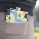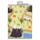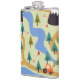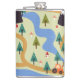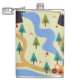Mountains, rivers, forest, car pattern. hip flask