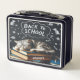 This whimsical lunchbox features a contented cat napping atop a stack of books dreaming of playful mice. The design captures the magic of dreams and imagination. "BACK TO SCHOOL" is written in a light airy font. Perfect for dreamers.