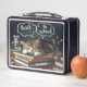 This is a standard metal lunchbox that appears to work just fine. We designed this box ourselves with an uploaded photo and custom text on the front and back. It looks absolutely beautiful except the front of the lunchbox is not centered like it shows in the photo. The print borders don't align with the inset flat part of the box where the preview photo online showed it perfectly centered in there. The back looks nice and centered though.