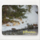 This mouse pad is shown with a photo print of a wild coyote hunting along the river in Yellowstone National Park.