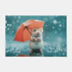 Mouse with Umbrella in Rain: Cute Rainy Day Scene Doormat