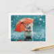 Mouse with Umbrella in Rain: Cute Rainy Day Scene Postcard