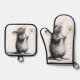 Mouse With White Daisy Oven Mitt & Pot Holder Set