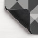 Triangles in 10 per cent opacity are arranged to make three boxes in a horizontal strip with triangles on the top and bottom that intersect to form four light triangles in front of five larger triangles. Change the background colour to your liking.