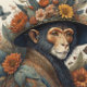 Beautiful and mystical fun chimp monkey with flowery hat. Perfect for all your decoupage projects and furniture transformation decoupage transferts.