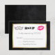 Moustache and Lips Black and Gold Wedding RSVP Card