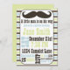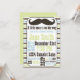 Celebrate the upcoming birth of your little man with this adorable baby shower invitation featuring brown, blue & green stripes and a stylish brown moustache.