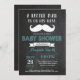 Moustache Baby Shower Invitation. Little Man. Aqua and Grey. Black and White Chalkboard Background. Bow tie. Gentleman. For further customisation, please click the "Customise it" button and use our design tool to modify this template.