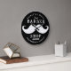 A beautiful black vintage style barber clock incorporating your business details. This elegant barber shop clock is ideal for barbers, hairstylists, hairdressers and hair salon professions. A simple and professional way to promote your barber shop business. A perfect moustache themed modern business clock. Personalise your details to create your own unique clock. Ideal for staff and employee uniforms.