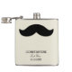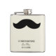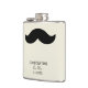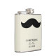 An old fashioned looking flask with a big black moustache, your best man's name, his role, and the wedding date.