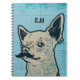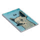 Quirky moustache dog art on pastel blue brick background to customise with your initials or name.