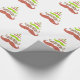 This custom Christmas gift wrap features a moustache Christmas tree in a bright whimsical pattern.