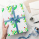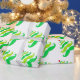 This custom Christmas gift wrap features a moustache Christmas tree in a bright whimsical pattern.