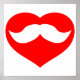 Moustache t-shirts, moustache heart gifts, Love and Valentine's day moustache pillows, mugs, bags, jewellery and gifts for all ages. White moustache inside a red heart.
