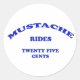 Moustache Rides Twenty Five Cents Classic Round Sticker