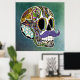 Hand drawn ink illustration of a Day of the Dead sugar skull sporting a spiffy moustache! Add text to personalise and you've got one awesome poster! This is the colour version - there are also a black and white and vintage versions, so check out all of the available designs and products!