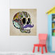 Hand drawn ink illustration of a Day of the Dead sugar skull sporting a spiffy moustache! Add text to personalise and you've got one awesome poster! This is the colour/vintage version - there are also a black and white and textured background versions, so check out all of the available designs and products!