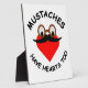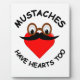 Moustaches have feelings too. Cute cartoon moustache with red heart and glasses image.