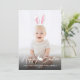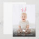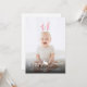A darker gradient appears at the bottom of the card so the white text stands out more. It reads “Happy Easter” in a modern script font with a cute bunny silhouette separating the words. Below that is a personalizable text area where you can add a name, playfully calling the child or person in the photo the Easter Bunny, along with the year.