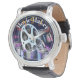 Movie Maker Wristwatch Style: Men's Vintage Black Leather Strap Watch is a big-faced timepiece that will never go out of style. Featuring a three-hand quartz movement and genuine leather strap, this watch’s classic look is great for both formal and fun occasions. Customise the face with your name. Material: Face: Alloy, Strap: Leather, Dimensions: Face: 1.45" diameter, Strap: 9.25" x 0.86," Case: 1.75" diameter, 3-hand analogue Japan Quartz®. Water Resistance: Up to 3 ATM (98.4 ft) 1-year manufacturer limited warranty battery included.
