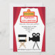 This movie night birthday party invitation features a movie camera and a directors chair and customisable text fields for your party information.