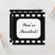 Share the news of a movie night with this fun, movie themed invite. A square piece of black and white film is filled with the information for your party. Simply type in the correct information.