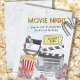 Movie Night kids birthday invitation - perfect for a kids birthday or backyard movie night just for the fun of being outdoors! The design is packed with cinema themed illustrations; walk of fame stars, admit one cinema ticket, clapperboard, film strip, directors chair, popcorn, movie glasses and theatre style typography. The template is ready for you to customise all of the wording to suit your occasion.