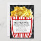 Big bag of popcorn, labelled with your custom text. Awesome Movie Night Party Custom Invitations, in black, white, yellow and red. Red and white striped popcorn box with yellow popcorn and black and white rays of light in the background Customise the pop corn tub with your party info. Makes a great, unique party invitation for the birthday boy, girl, or any occasion!