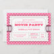 Invite everyone to your birthday Movie Night with this fun invitation designed like a movie admission ticket. White ticket, with text in pretty pinks on a fun pink polka dot patterned background. Also available in a variety of additional colour schemes.