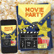 Movie Party Invitation - perfect for any movie themed party such as movie night at home, under the stars or at the cinema! Fun, simple design featuring stars and a movie set clapperboard to hold your invitation details. The invite is complete with cinema theme illustrations including popcorn, soda, entry ticket and vintage marquee lights. Please browse my kids invitations collection similar designs or more ideas.