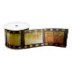 Ribbon that looks like movie reel film. In colours of black, amber yellow and orange. A nice addition to my popcorn, movie theatre collection.