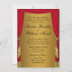Red movie theatre or stage curtains design on gold for your wedding invitations.