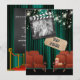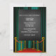 A fun and trendy illustration of a movie theatre with seats, vibrant teal blue draped curtains; bright lights surrounding a clapper board that has a photo inlay; popcorn; a hotdog and an access ticket, all of which may be customised to suit your special celebration.
