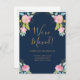 Moving Announcement Navy Blue Pink Flowers Postcard