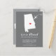 Modern moving announcement featuring the state of Alabama , with a red heart & aeroplane set on a grey background. The background colour can be changed easily by clicking personalise and then click to customise further to view our colour picker. From there you can also move the aeroplane & heart! Contact our shop if you require help or need another state.